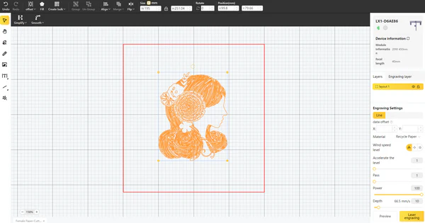 از نرمافزار LaserPecker Design Space برای طراحی یا وارد کردن طرح موردنظر خود استفاده کنید. مطمئن شوید که ابعاد طرح با اندازهی کاغذ انتخابی شما مطابقت دارد.